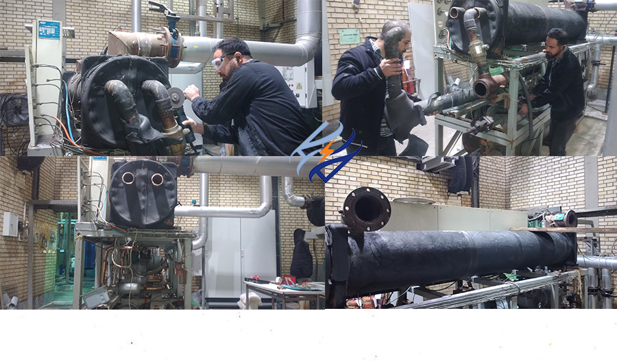 نمونه تعویض و نصب اواپراتور پوسته و لوله (Shell & Tube) 160 تن بر روی چیلر تراکمی